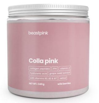 Colla Pink je beauty nápoj bez cukru, který si díky lahodné chuti a komplexnímu složení zamiluje každá žena. Funkčnost této formule je založena na hlavní složce, tedy hydrolyzovaných kolagenových peptidech. Ty vznikají speciálním procesem hydrolyzace, při kterém dochází k rozkladu kolagenu na menší molekuly v podobě peptidů. Výsledkem je biologicky dostupný kolagen, který je přirozenou součástí organismu. Je totiž strukturálním proteinem v pokožce, vlasech, nehtech nebo chrupavce. V žádném beauty produktu by pak neměla chybět ani kyselina hyaluronová, která je také pro tělo vlastní látkou. Nachází se například v pokožce, kloubech nebo očích.