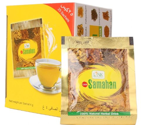Samahan je koncentrovaný, 100% přírodní rostlinný přípravek, který patří na Srí Lance mezi prastaré receptury známé jako „Peyava“. Neobsahuje žádná barviva ani konzervanty. Ájurvéda doporučuje pravidelné pití čaje Samahan jako prevenci proti dýchacím onemocněním i pro udržení celkového zdraví, obzvláště v zimním období.